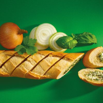 Patonki (VEHNÄjauho, vesi, hiiva, suola, RUISjauho, VEHNÄMALLASjauho), yrttivoivalmiste 15% (VOI 75%, sipuli, persilja, valkosipuli, suola, tärkkelys, yrtit, mausteet, happamuudensäätöaine: sitruunahappo, luontainen valkosipuliaromi). Saattaa sisältää jäämiä sinapista seesaminsiemenistä tai soijasta