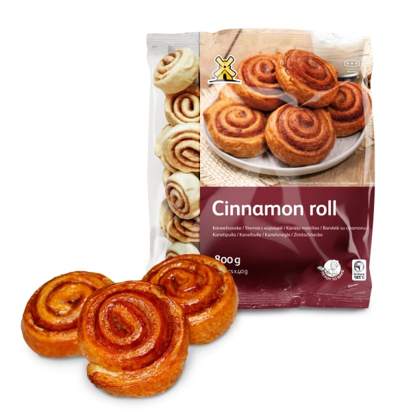 Tanskalainen lehtitaikinakierre kanelitäytteellä. Pakkaus soveltuu vähittäiskauppaan , paistopisteeseen tai Horeca :lle.