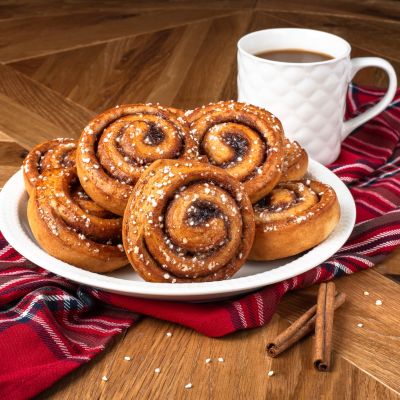 Kanelipulla, runsas kanelitäyte. Päällä raesokeria. XL-pakkaus soveltuu vähittäiskauppaan, paistopisteeseen tai Horeca :lle. Vähälaktoosinen. Vegaaninen.