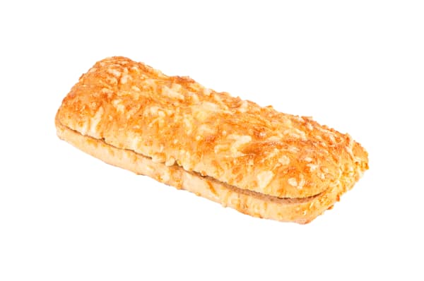 Suorakaiteen muotoinen kypsä vehnäpanini, jossa on aromikas maku, päällystetty juustolla.