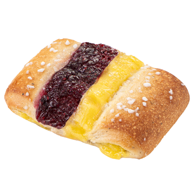 Vadelma- mustikka- kardemumma viineri vaniljatäytteellä. Koristeltu raesokerilla. Tuote sopii vegaaneille. Vähälaktoosinen.