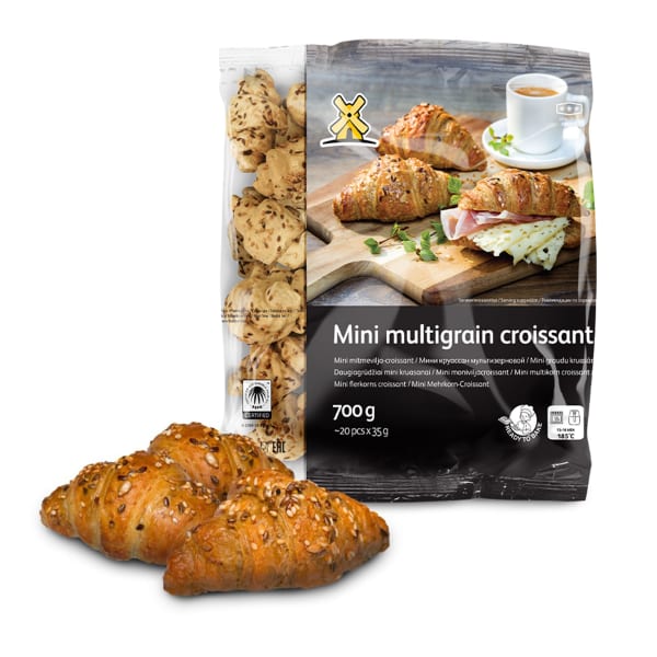 Mini moniviljacroissant. XL-pakkaus sopii vähittäiskauppaan, HoReCaan ja paistopisteille.